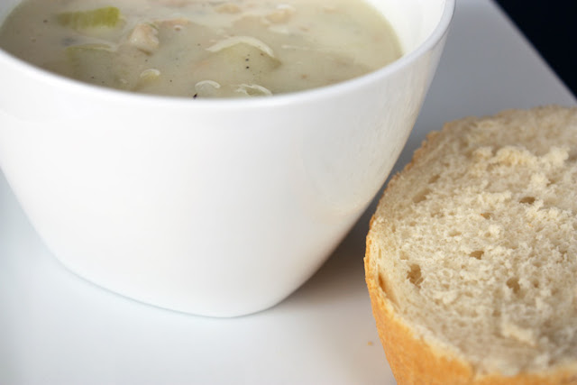 it's saturday, i know... but isn't it still technically friday somewhere in the world? alright, so i'm late in posting.. this was supposed to be for yesterday. for food+foto fridays.. today {err, yesterday} is new england clam chowder... made by the lovely husband.