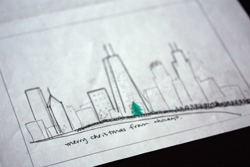 when i decided to open my little online shop, i knew i wanted to sell a chicago card. this past fall, i asked my sister {my illustrator} to draw me the chicago skyline... here's what she came up with after a few minutes of what she likes to call "doodling"...