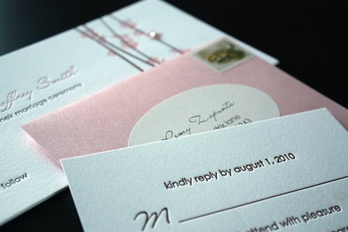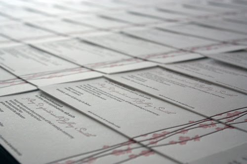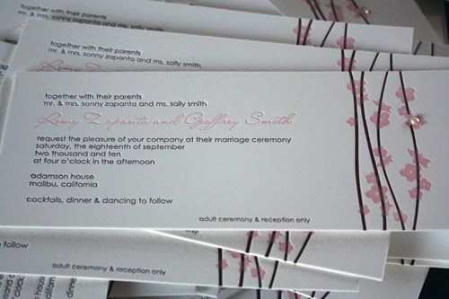 my good friend remy is getting hitched and i was honored to print their wedding invitations. geoff {her fiance} is one of the talents behind the ever successful video game call of duty: modern warfare 2 and he designed the vine and cherry blossom image on their invitations. i was really happy with the outcome {and so were the bride and groom-to-be}... the invitations reflect the ultra-modern and chic style of their outdoor, malibu wedding!