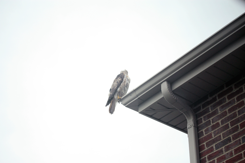 the bunnies should stay away if they know what's good for them. my husband spotted a hawk perched on our gutter...