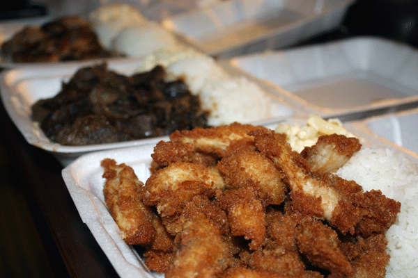 {l & l... oh boy, love me some hawaiian bbq... chicken katsu, macaroni salad.. sigh}