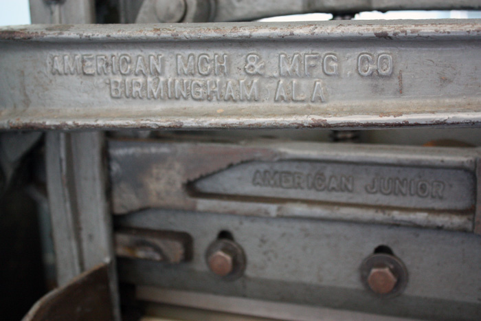 it's made by american machinery & manufacturing company and the only reason i know that is because it's right on the cutter. i know really nothing else about this guillotine besides that it is really heavy, it takes 2-3 people to carry it, it's made out of cast iron, and weighs well over 300 pounds. it cannot score, it has no fancy grid, but it can cut like no other!