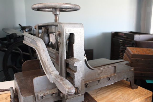 i was {and still am} a scrapbooker before i got knee deep in letterpress and this used to be my paper cutter... pretty and green with a little cute bug emblem on it. i thought it was pretty nifty that you could cut and score with it.