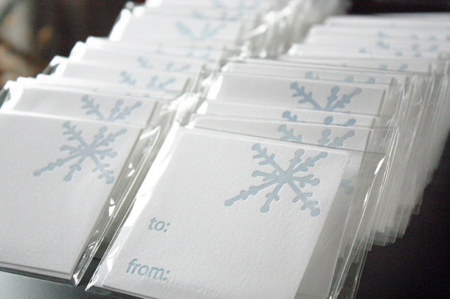i've been a busy bee lately, but today i want to tell you about the queen bee... the queen bee market that is. in early october, i had an interview feature over at oh my! handmade goodness {read about it by clicking 'here'}. a few days after the feature was posted, i received an email from a woman named mique. in her email, she said she read my feature and laughed aloud because she had a babysitters club and sold candy from costco in junior high and high school, just like i had! {again, you must read the interview to understand what i'm talking about because if you haven't, you're probably confused right about now} it turns out that mique is the talented woman behind the blog 30 handmade days, a blog filled with crafty inspiration. along with being a busy mom and a successful blogger, she and her sister host a handmade art & craft fair called the queen bee market. mique asked if i would like to have a penelope's press product in their swag bags... i of course said yes! i got to work and letterpress printed 110 mini holiday gift cards for the swag bags and shipped them off in the mail. if i was in warm san diego {and not chilly chicago} i would totally check out the show, so if you're in the san diego area this weekend, swing by the hilton del mar for the queen bee market holiday show!